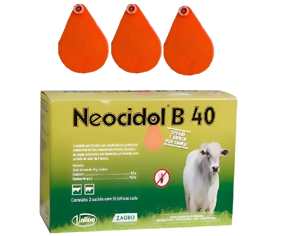 O Brinco Neocidol B40 é um produto desenvolvido para auxiliar no manejo e controle de infestações por mosca-dos-chifres (Haematobia irritans) em rebanhos bovinos, inclusive em casos de resistência a tratamentos convencionais à base de piretroides.